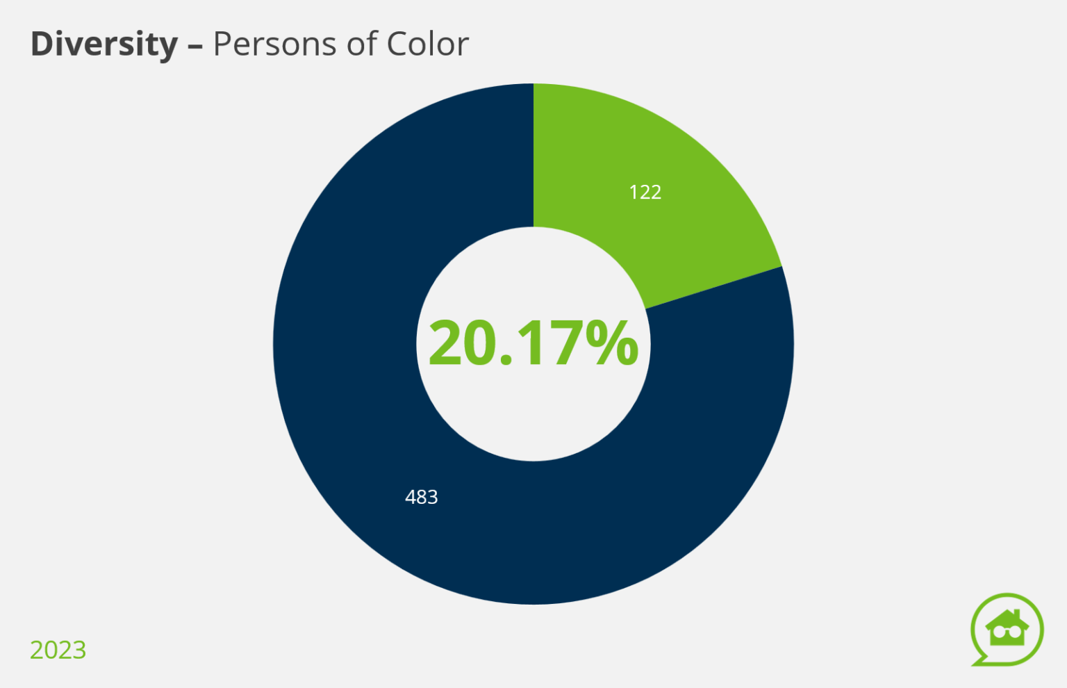 - Diversity: Draw (plus a smidge). We improved slightly in the persons of color category, going from 16.04% to 20.17%. That’s a win in my book. However, the percentage of women remained flat.