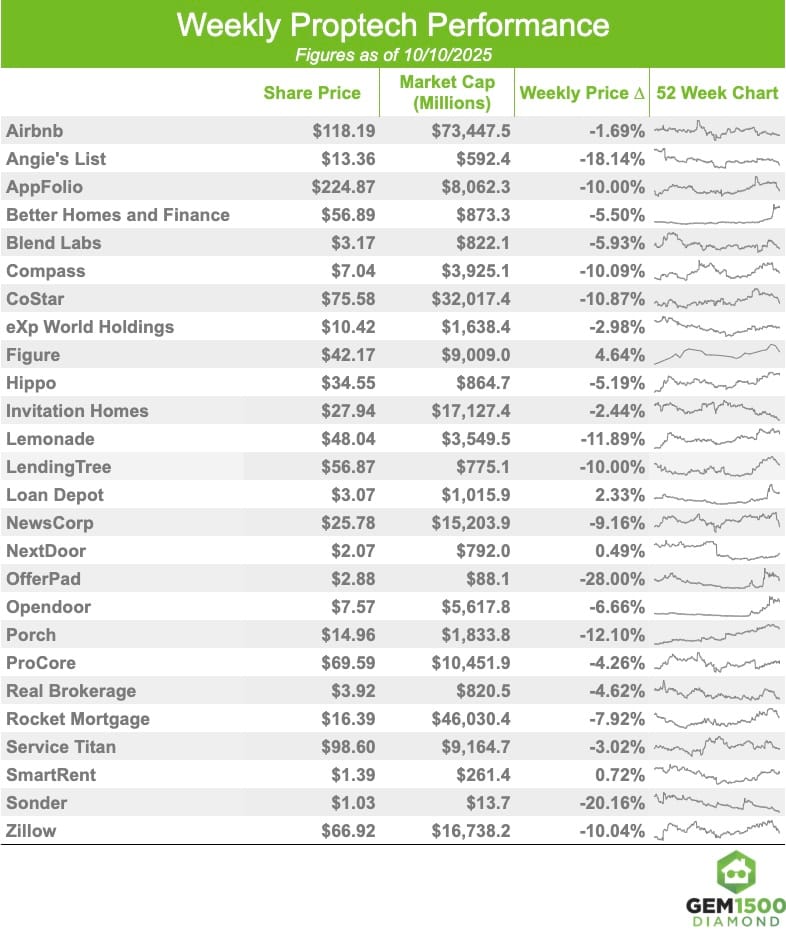 - The GEM Proptech Index decreased 5.8% from the previous week.