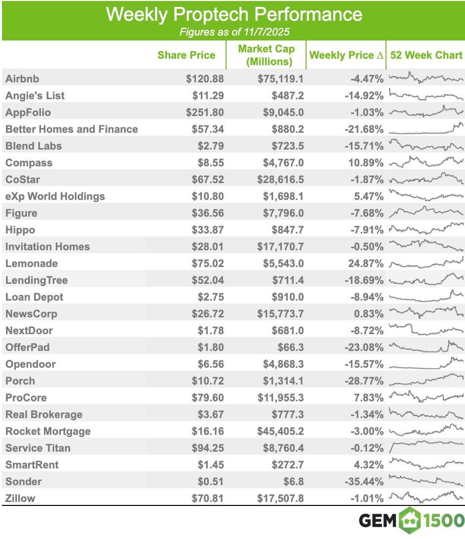 PROPTECH INDEX WEEKLY - AS OF 11/7/2025