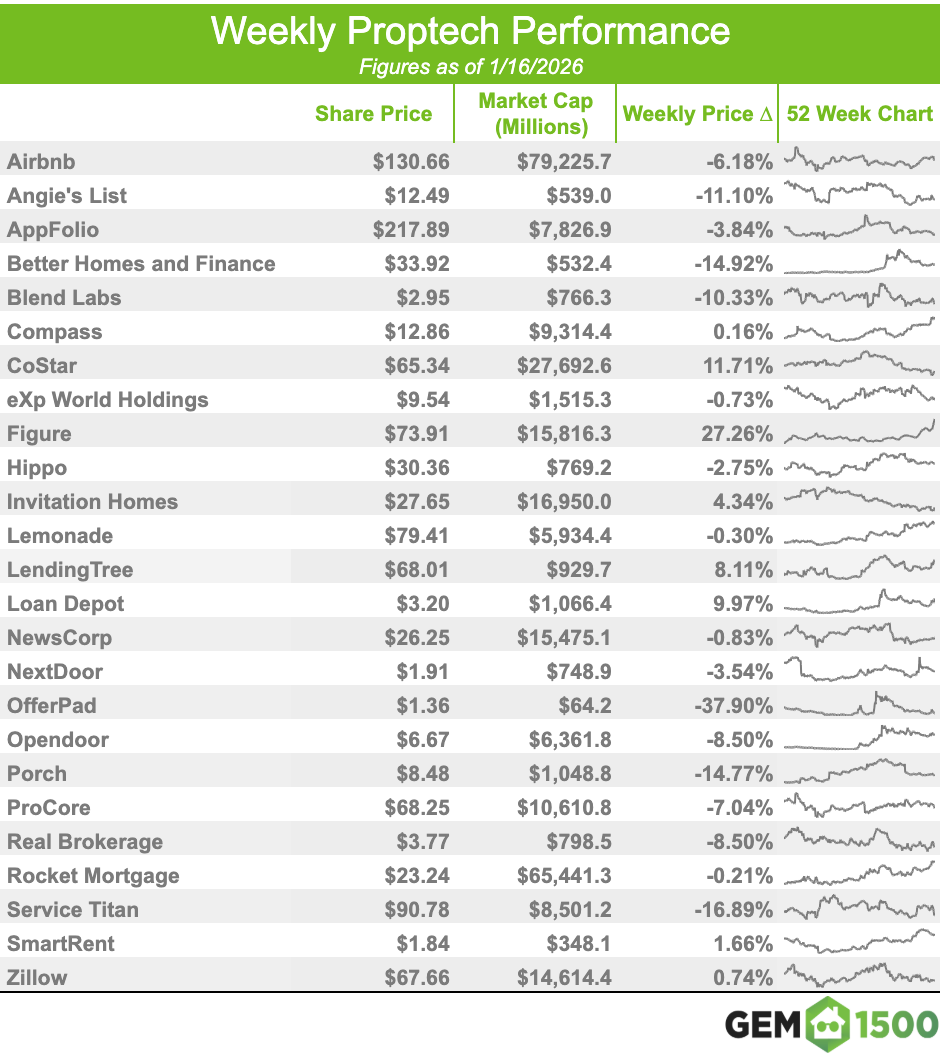PROPTECH INDEX WEEKLY - AS OF 1/16/2026