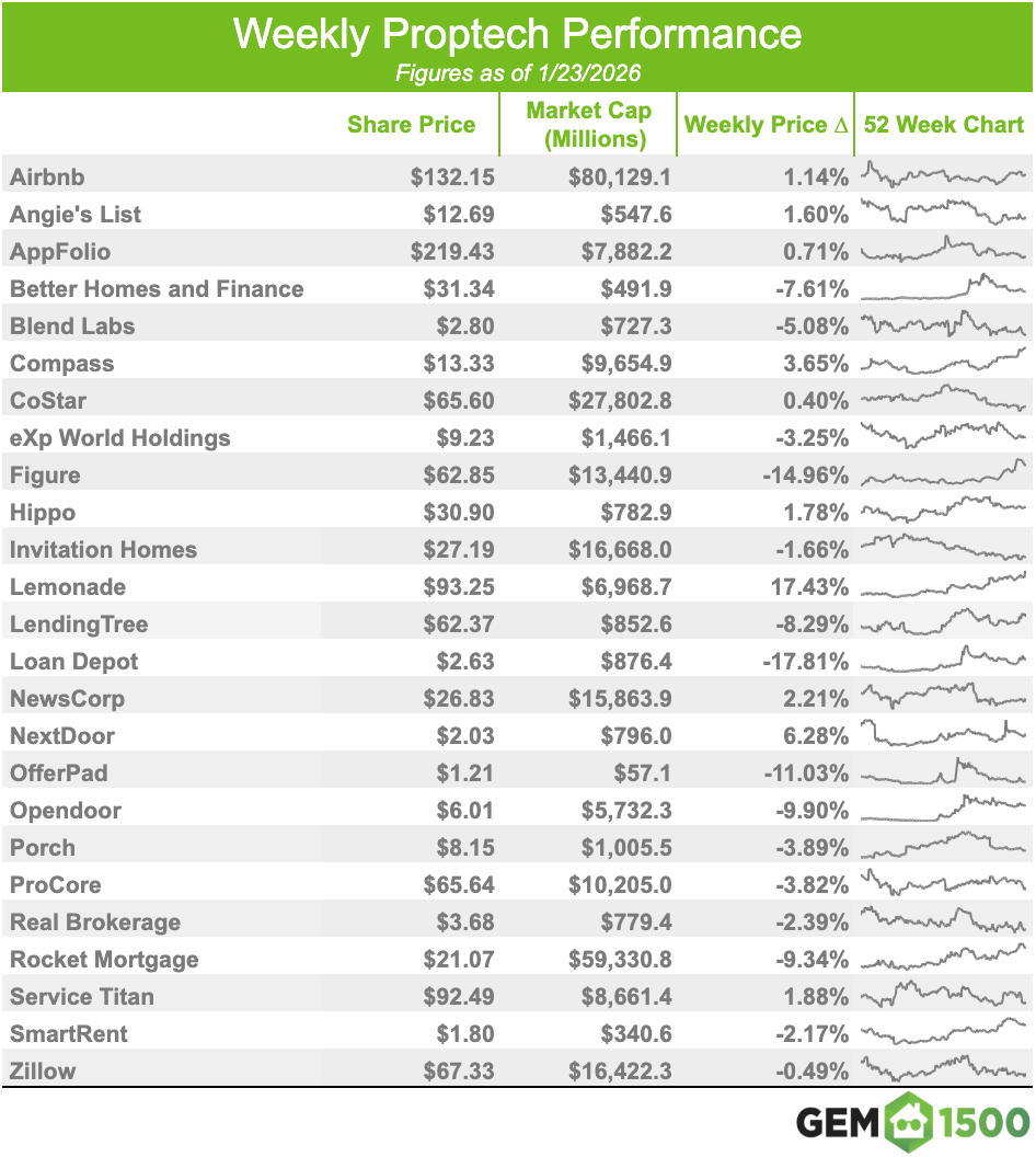 PROPTECH INDEX WEEKLY - AS OF 1/23/2026