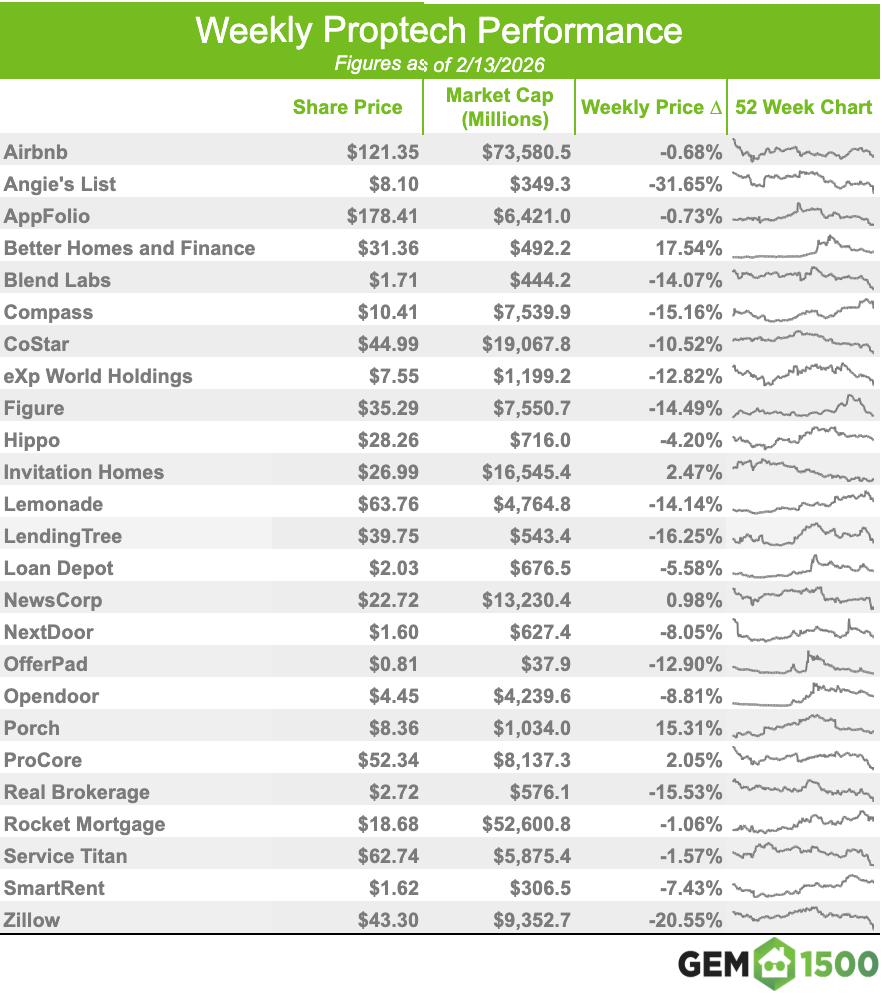 PROPTECH INDEX WEEKLY - AS OF 2/13/2026