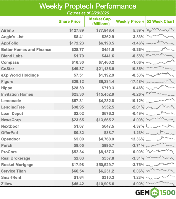 PROPTECH INDEX WEEKLY - AS OF 2/20/2026