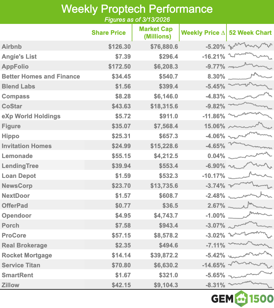 PROPTECH INDEX WEEKLY - AS OF 3/13/2026